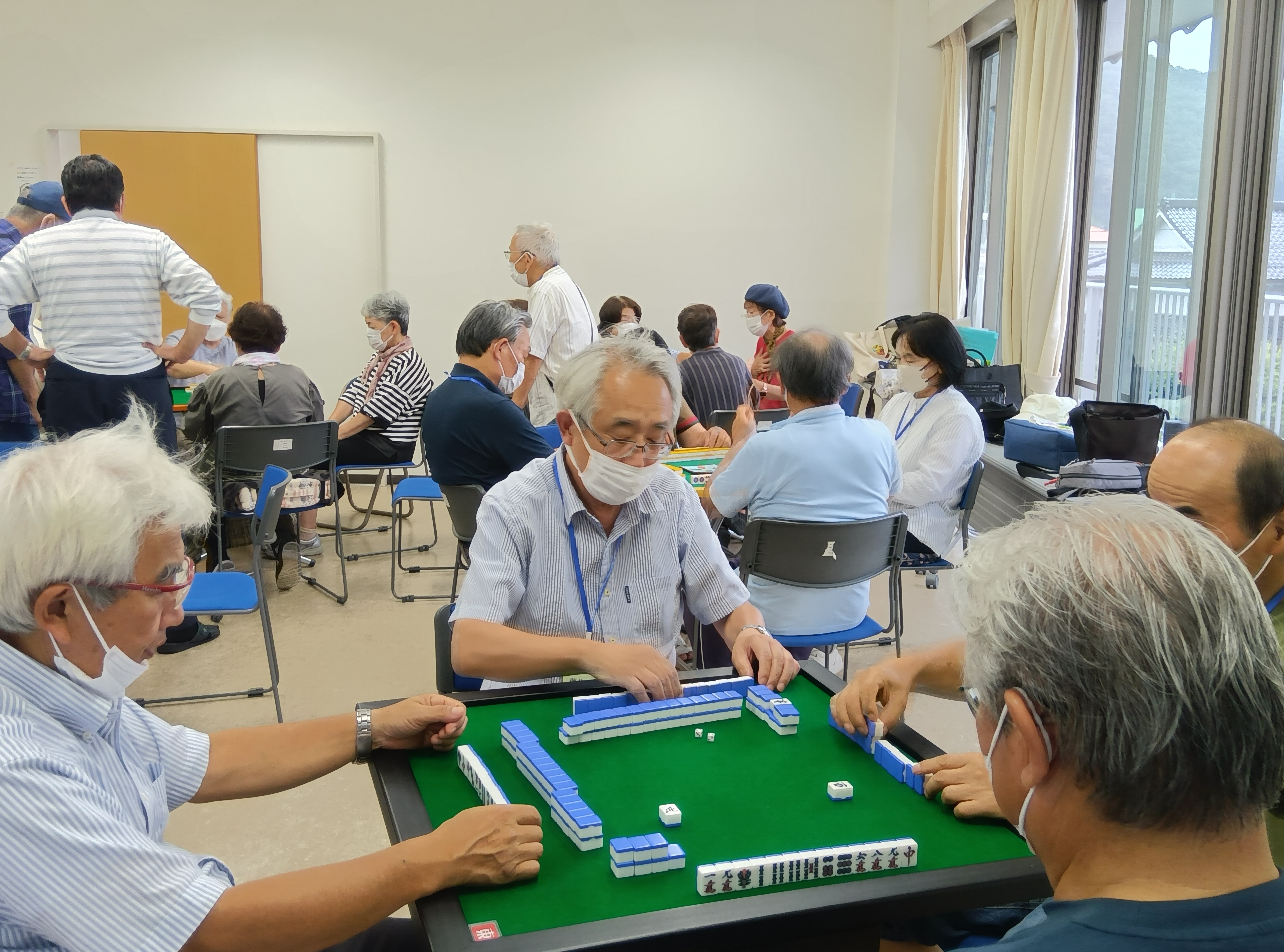 脳トレ、健康麻雀、輪投げ、ターゲットゲーム、健康体操、皆で歌う会など、3地区の公民館で