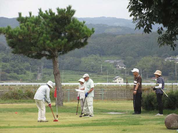 グラウンドゴルフ大会を開催しています。この大会はプレーを通して、心身の維持、向上を図るとともに